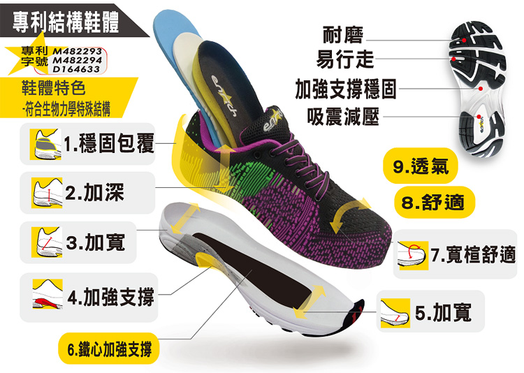 台灣NO.1 冠軍耐走鞋 ENRICH英立奇 飛織運動鞋