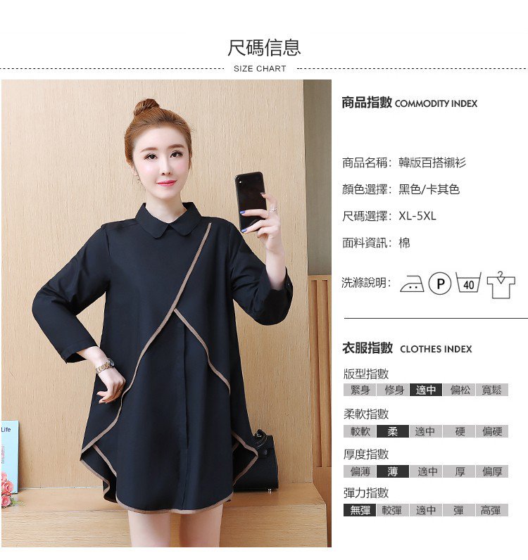 【限時下殺】第二件僅需四折!時尚顯瘦,清新娃娃領女式中長款襯衫,面料柔軟,舒適透氣!