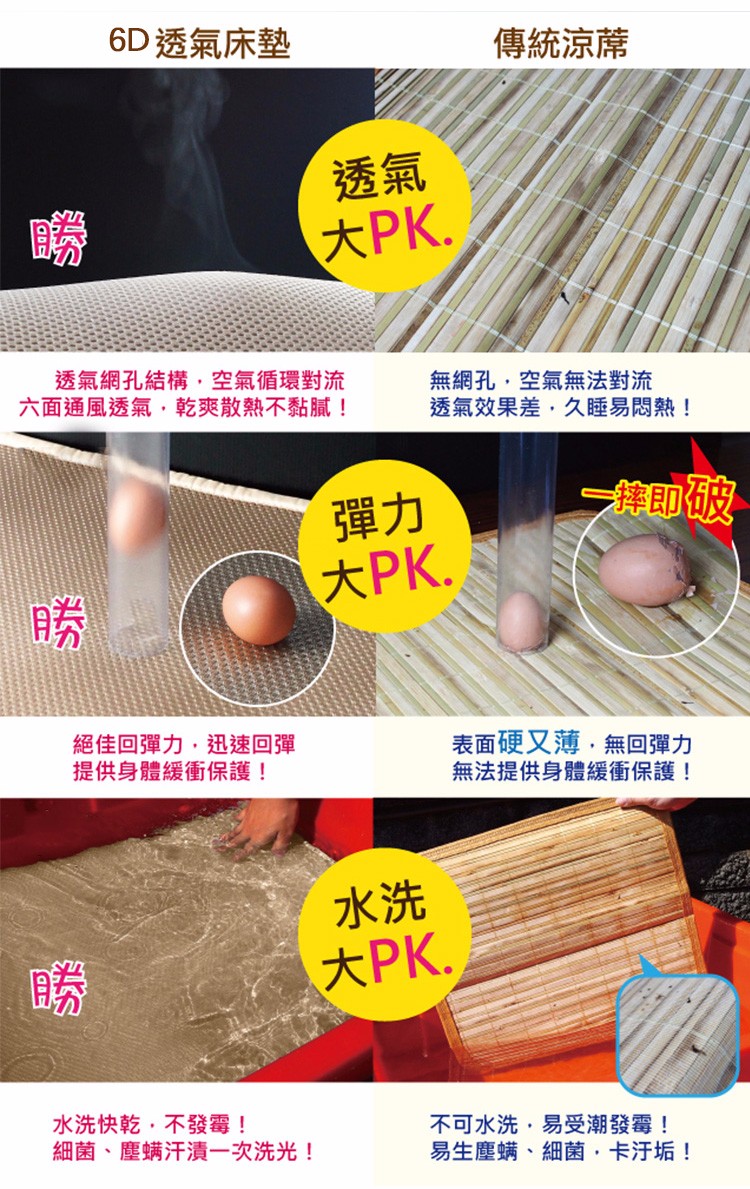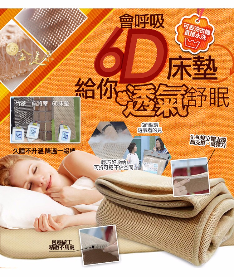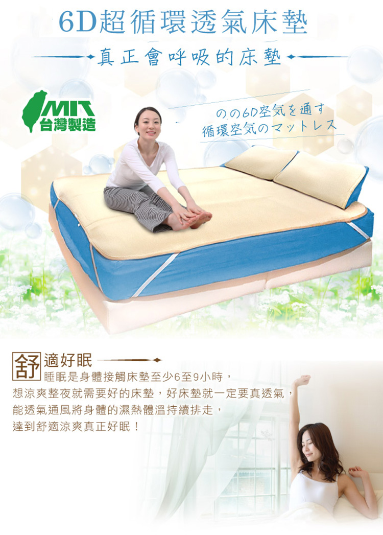 【6D透氣床墊來了!】沒有比這更透氣的床墊!六面透氣孔,空氣對流系統,不悶熱不出汗,讓你一夜好眠!【第二件998】